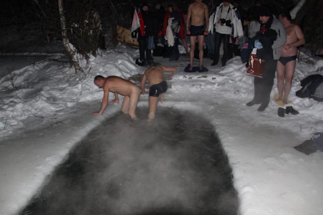 Прибыли мы одними из первых, но прорубь была уже готова и очищена.