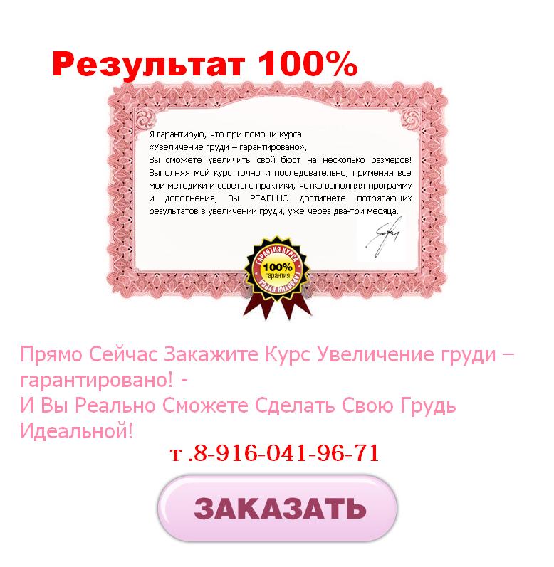 Долгое время я жила с жутким комплексом – плоской грудью. Вокруг все женщины как женщины, а я.. Уже попросту опустила руки – что ж тут поделаешь? От знакомой узнала про курс. Увидела её результаты – глаза на лоб полезли! Теперь и у меня грудь моей мечты. Шарики объёмные, упругие и сексуальные. Муж в восторге! :-)