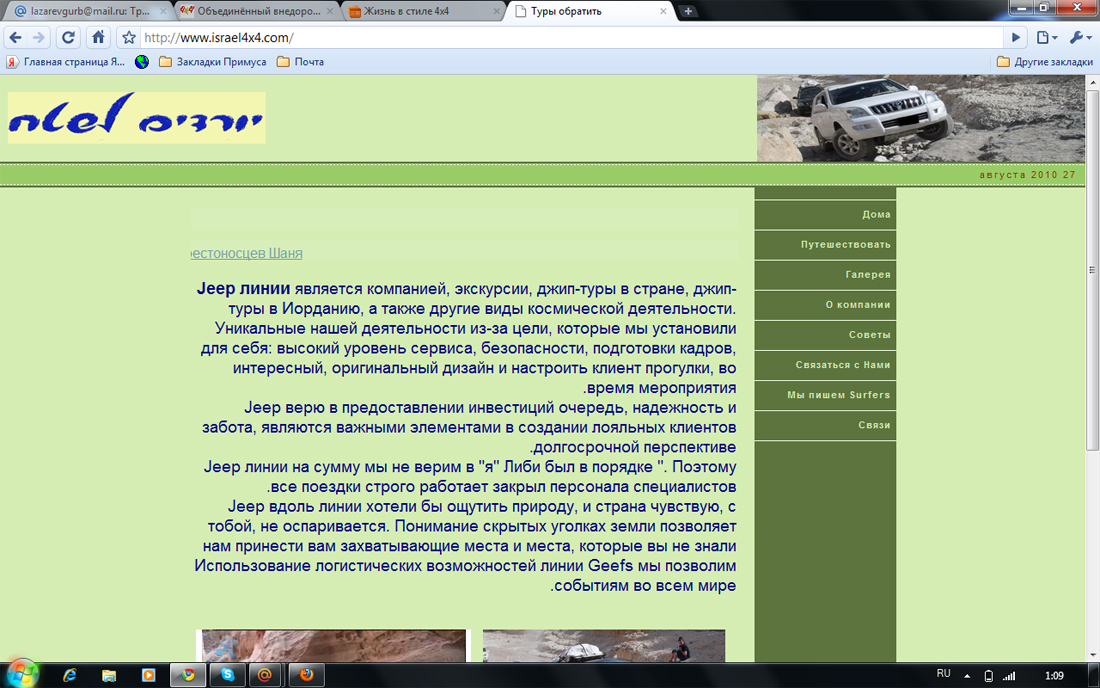 Посмотрев сайт мне стало любопытно что у них да как, ребята Очень даже Очень хорошо катаюцца :lol: поездка Jeep - шафран Хар Хар Рамон Бога оказывается, Jeep опыт, чтобы "Гора Бога" Маунт куркумы, который, по мнению историков, является тот факт, что гора Синай, чтобы сыны Израилевы получили Тору в дикой пустыне воздушным транспортом удаленных рек непризнанной Негев крайней преступлений.