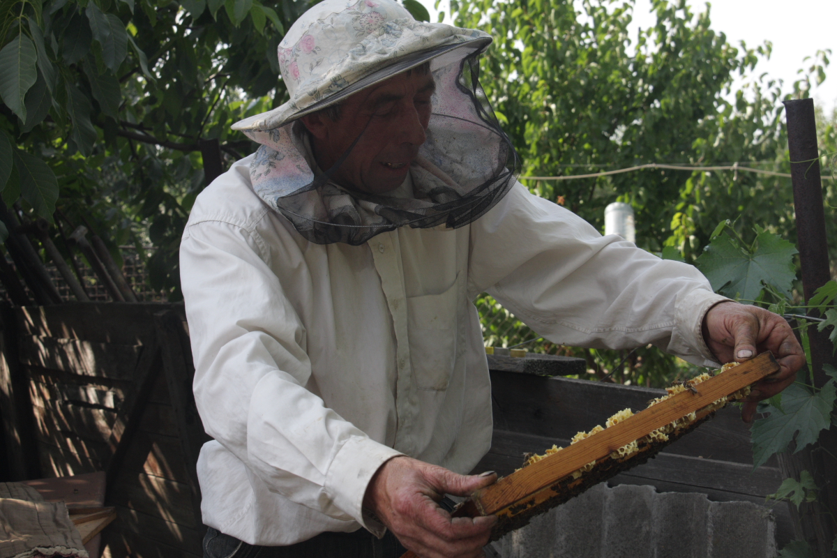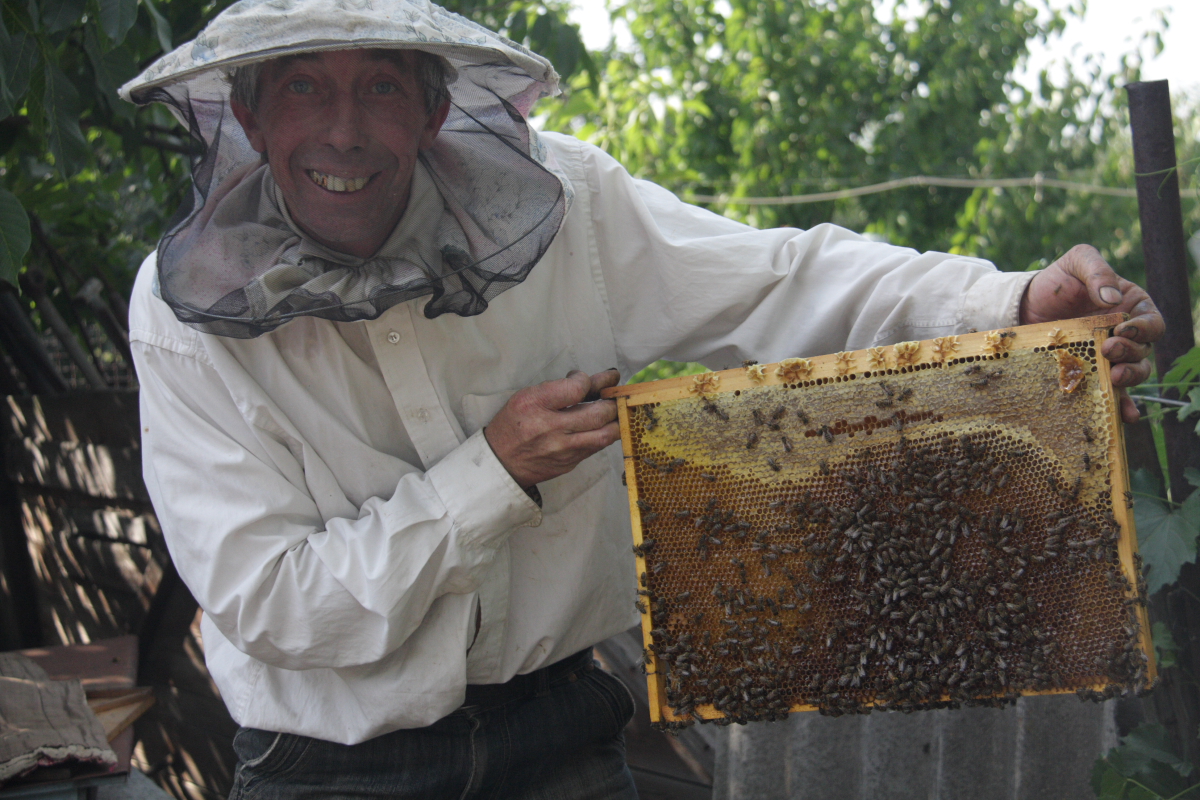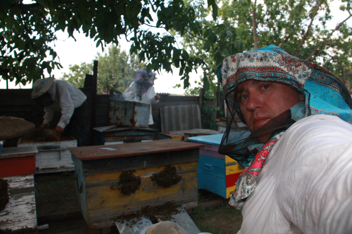 Пригласил очень интересный человек, всю жизнь держит пчел, а какой он собрал «музей» с полей…оружие ВОВ, предметы быта…даже стоянку древнего человека нашел, там какие то камни, налетели ученые с Донецка, или Киева, вообще руки трясутся ,слюни текут, забрали ….о этом после….сейчас пчелы!