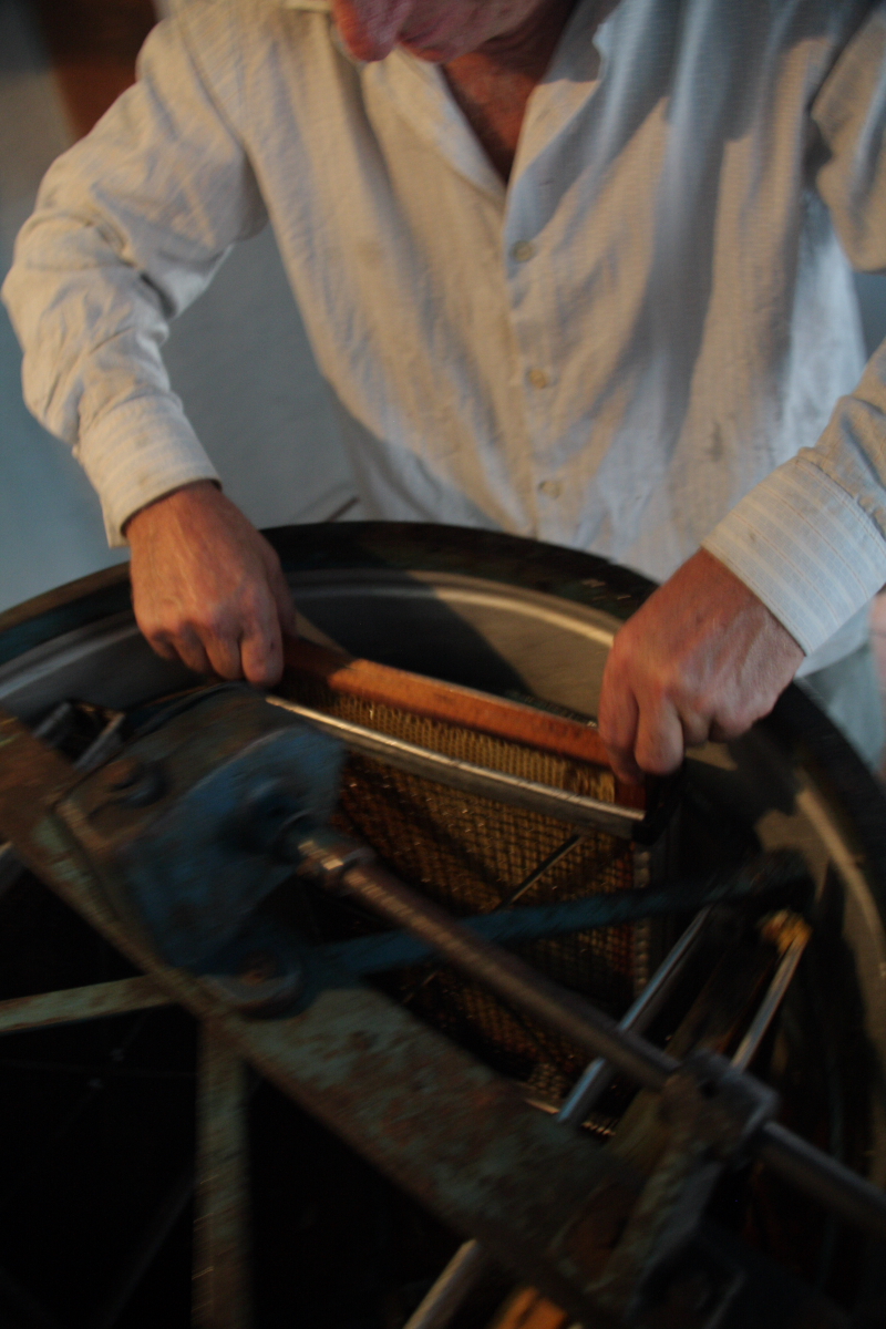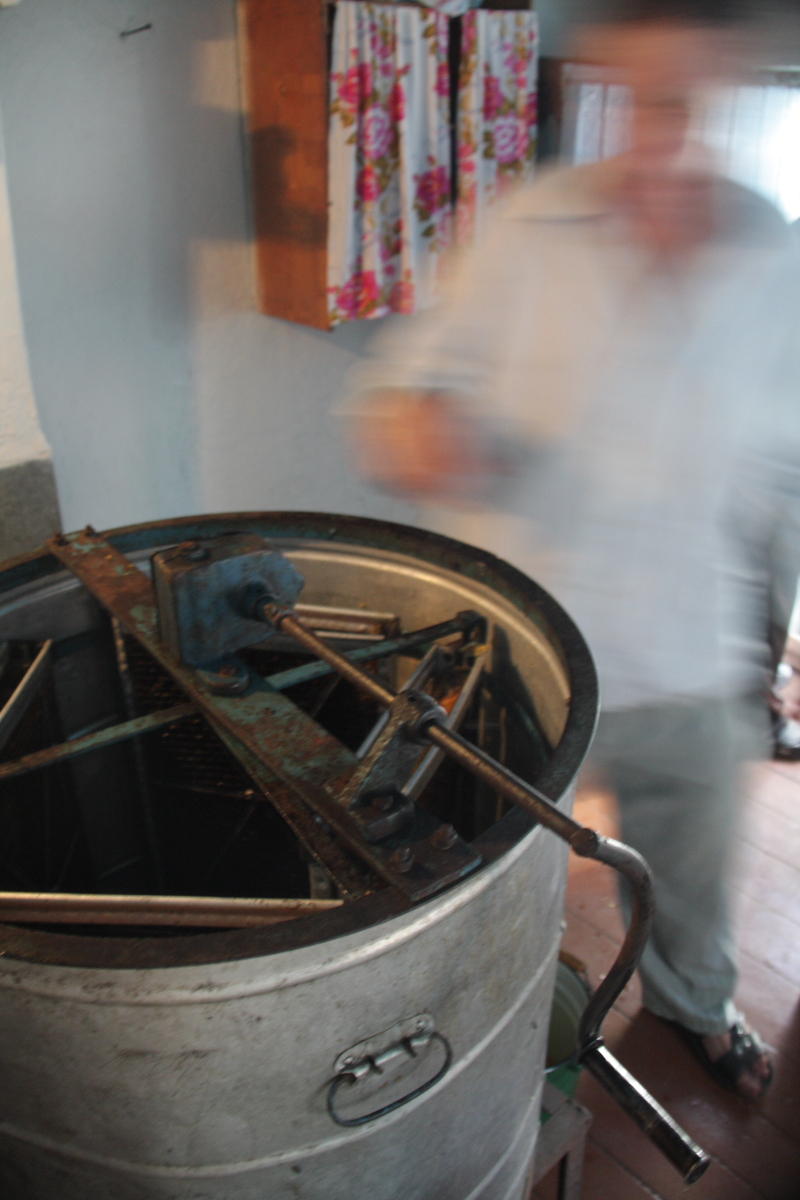 Процесс закладки сот (рамок) в барабан (медогонки) тоже требует некой сноровки и умения, крутить нужно медленно и с определенной силой…
