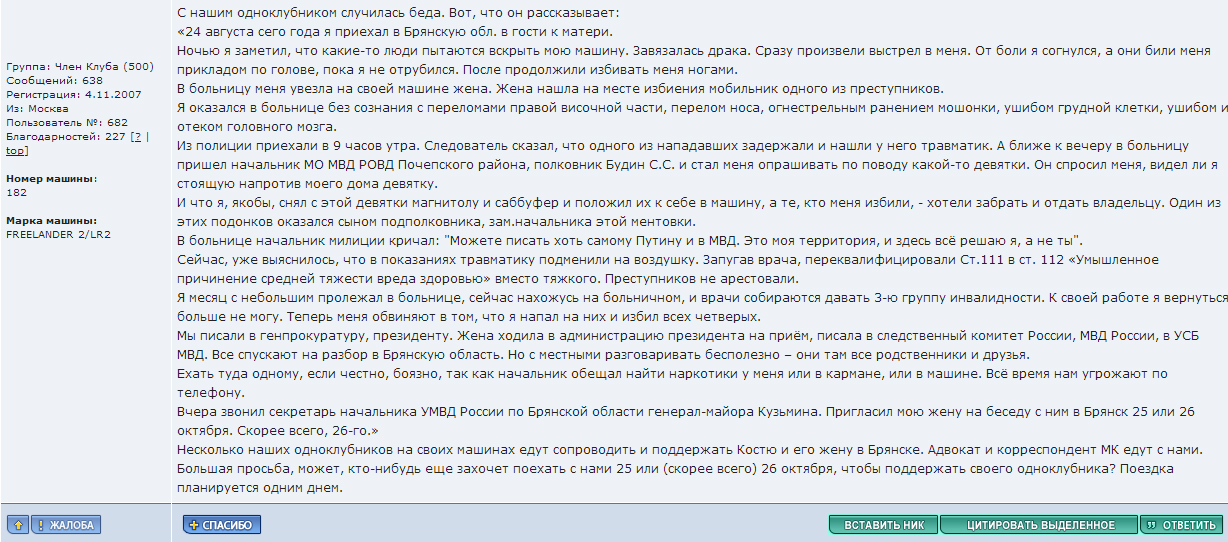 Re: Получил письмо LR-клуба (ЧП с членом LR-клуба в Брянск.обл)