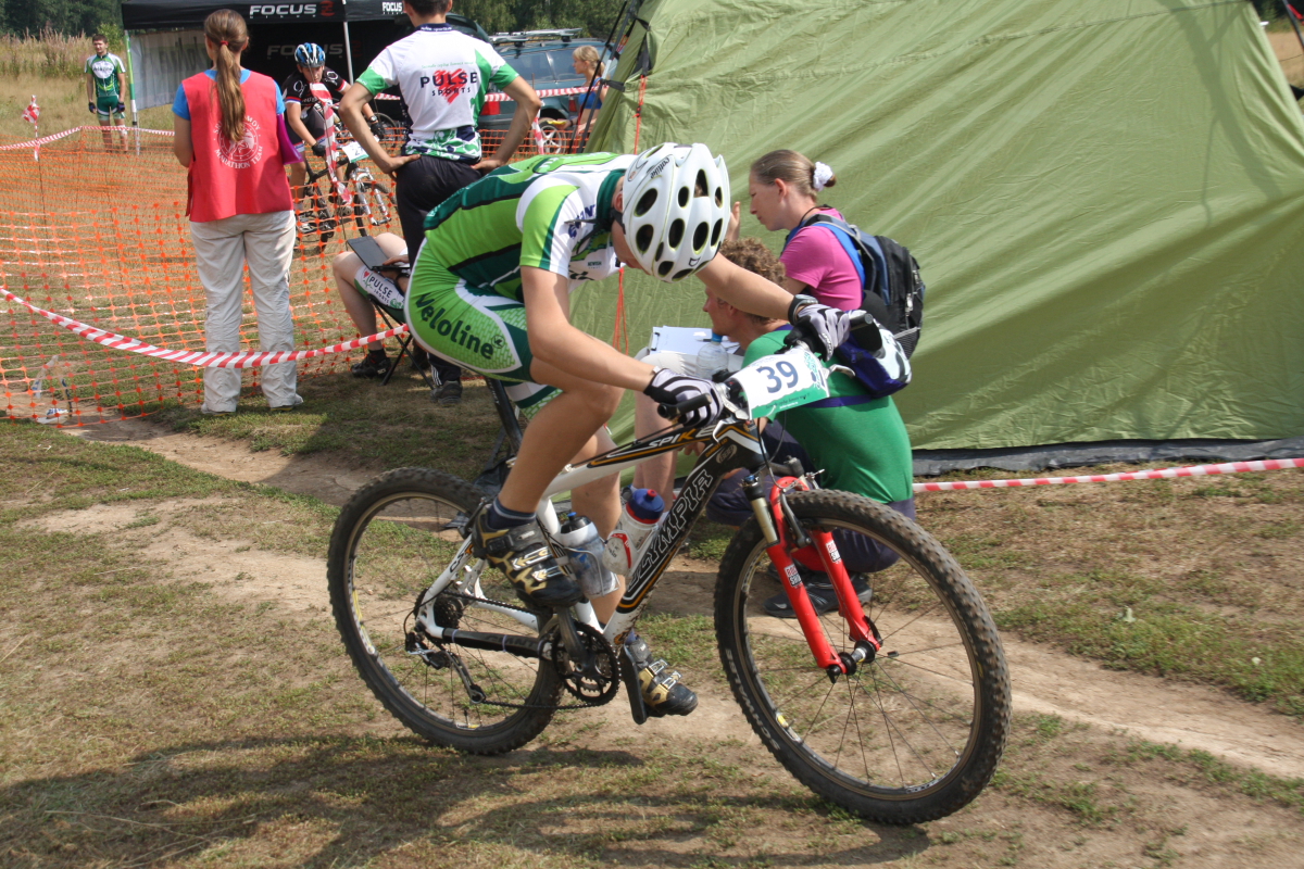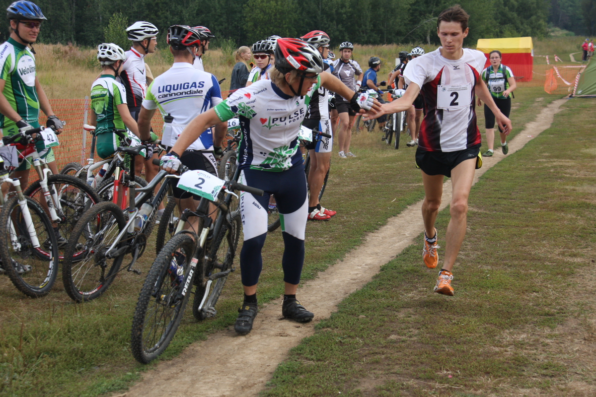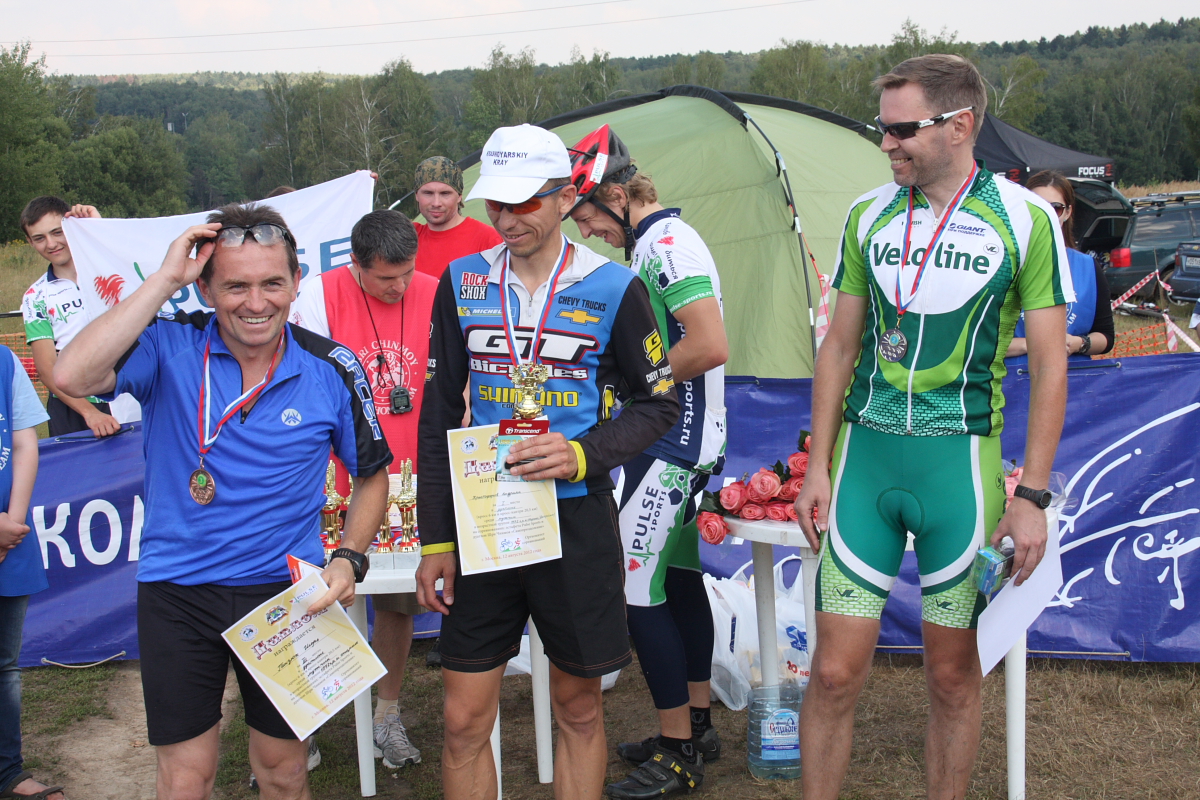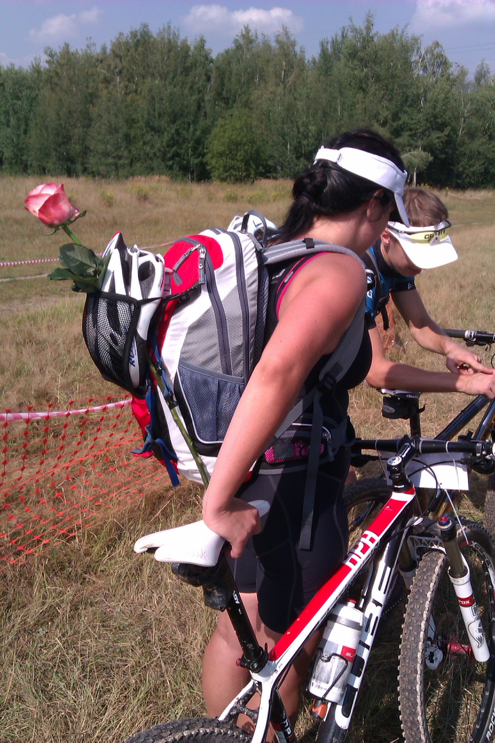 Так как в парке ,даже в такую дождливую погоду гуляли люди и трассу нам не позволили перекрыть, пришлось ехать на велике , сначала за последним( дед бежал,да так бежал все 21 км! )