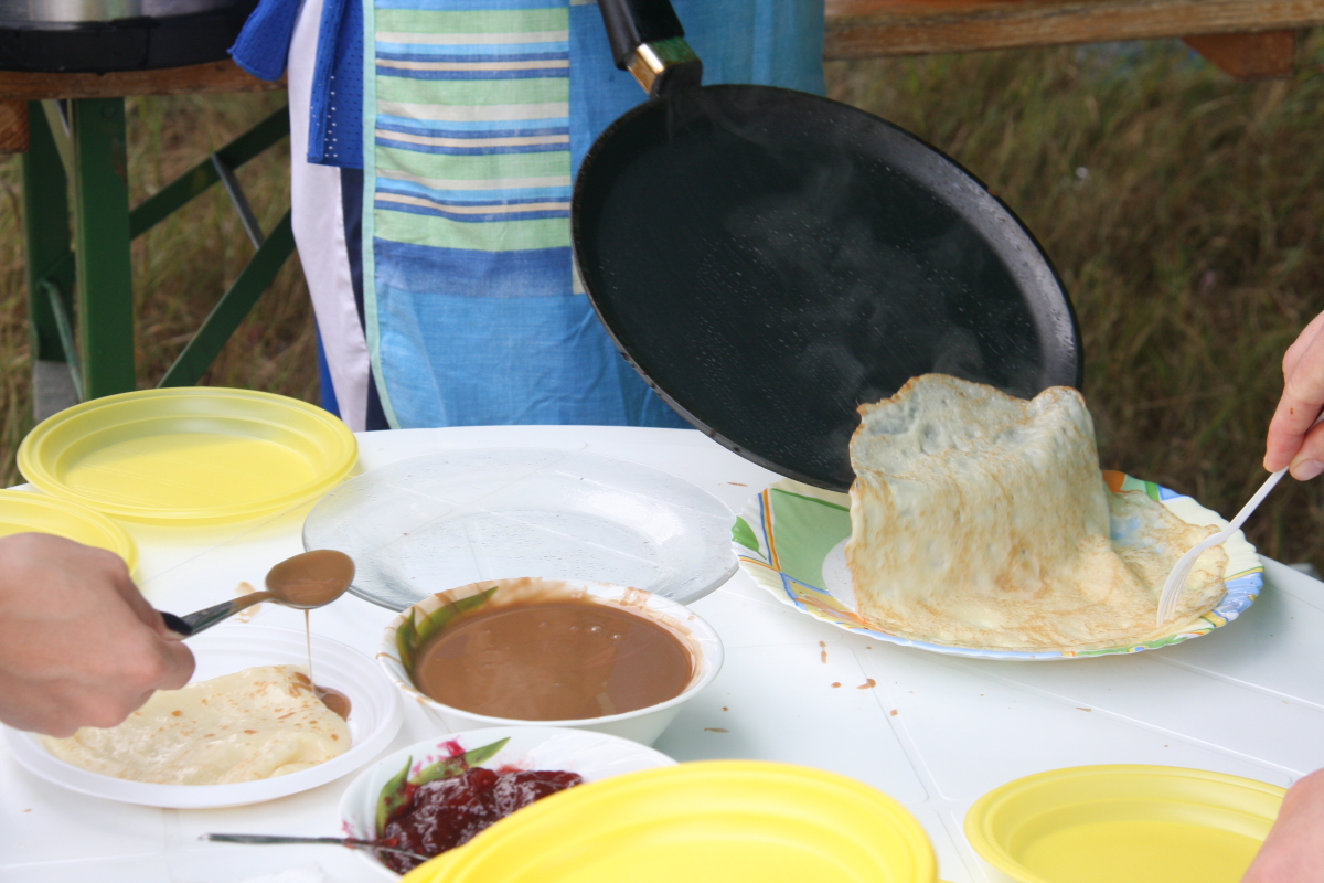 кормили гречкой,на воздухе да еще при дожде...мммм объедение!