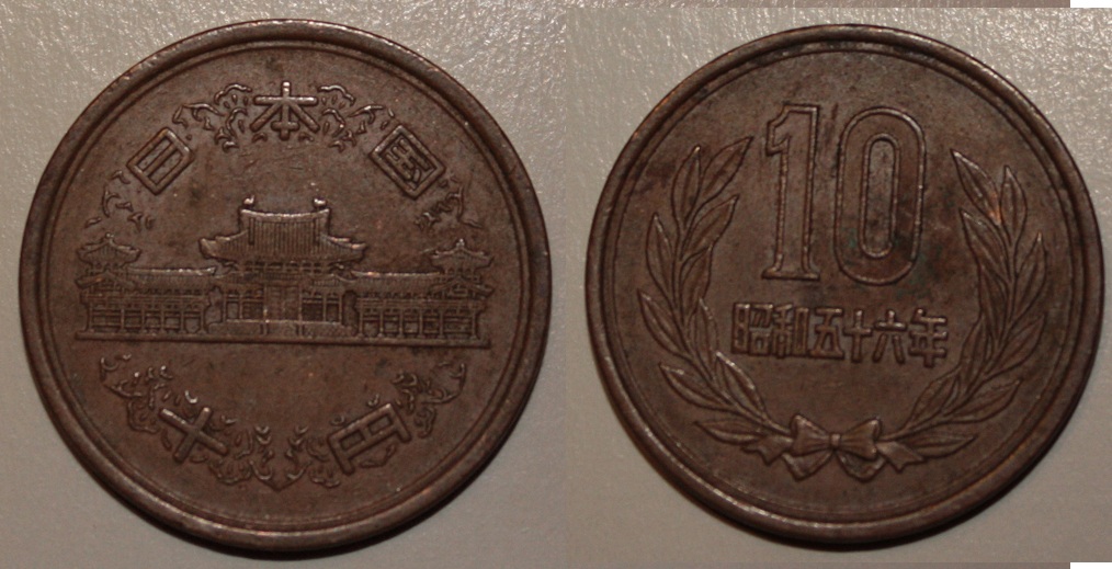 А это Япония. В машинах, которые мы привозили из Японии мне, почему-то, всегда попадалась именно эта монета. Говорили, что она часто использовалась при оплате за дороги, но что-то маловат номинал для этих целей. Короче находил я ее в каждой своей праворукой машине, завалившейся куда-то. Тоже сохранилась только одна, но об этих почему-то не жалею :)