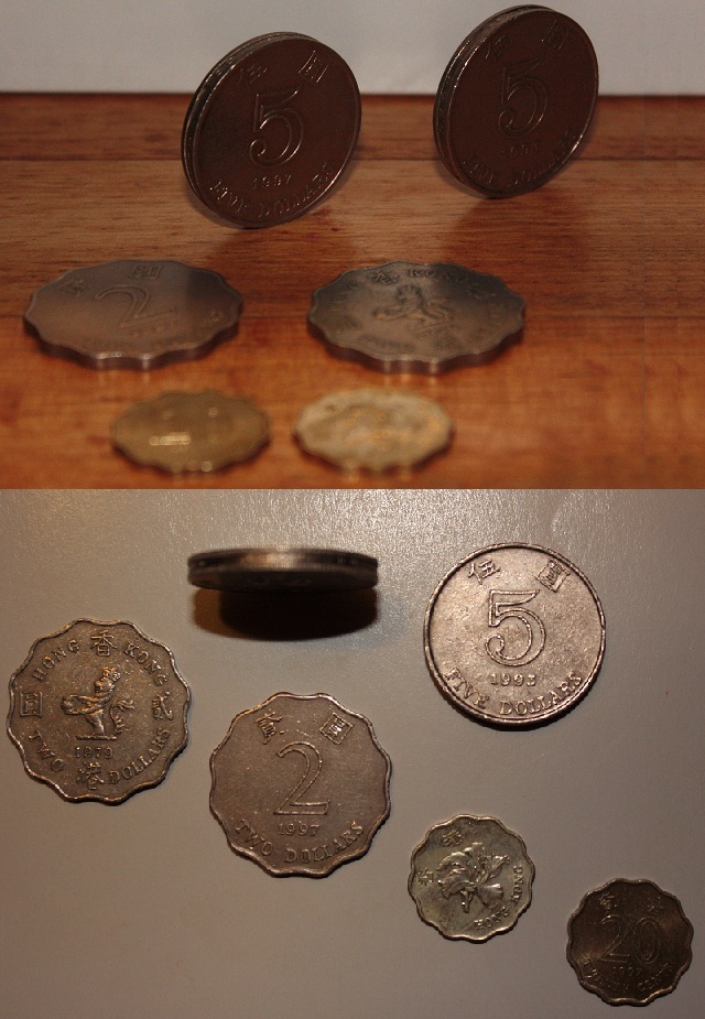 Это Гонконг. Самые толстые и самые "некруглые" в нашей банке, поэтому неизменно привлекающие к себе внимание того, кто в банку полез :):