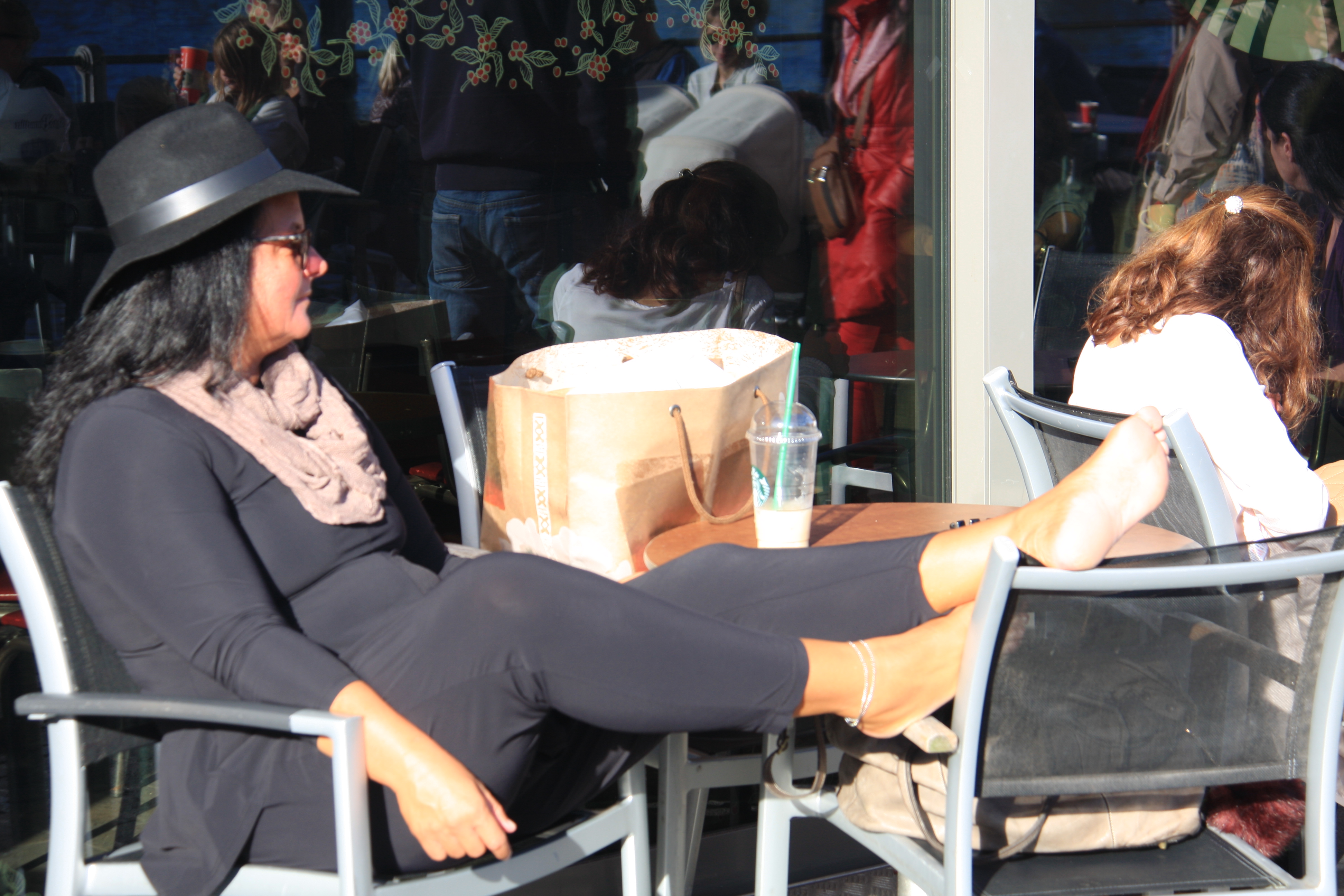 Вернемся к даме на фото, конечно сидеть на набережной в кафе так...да еще в таком возрасте и шляпе!!!