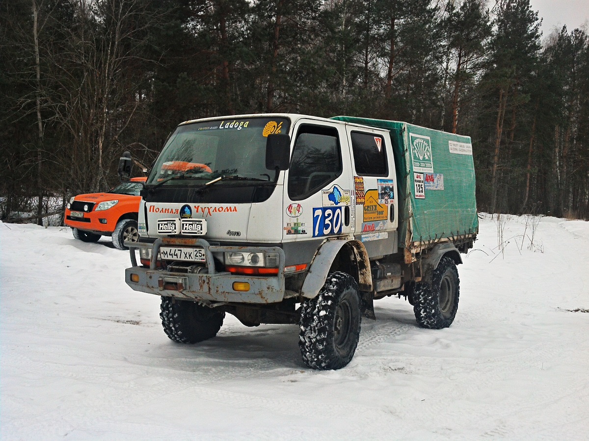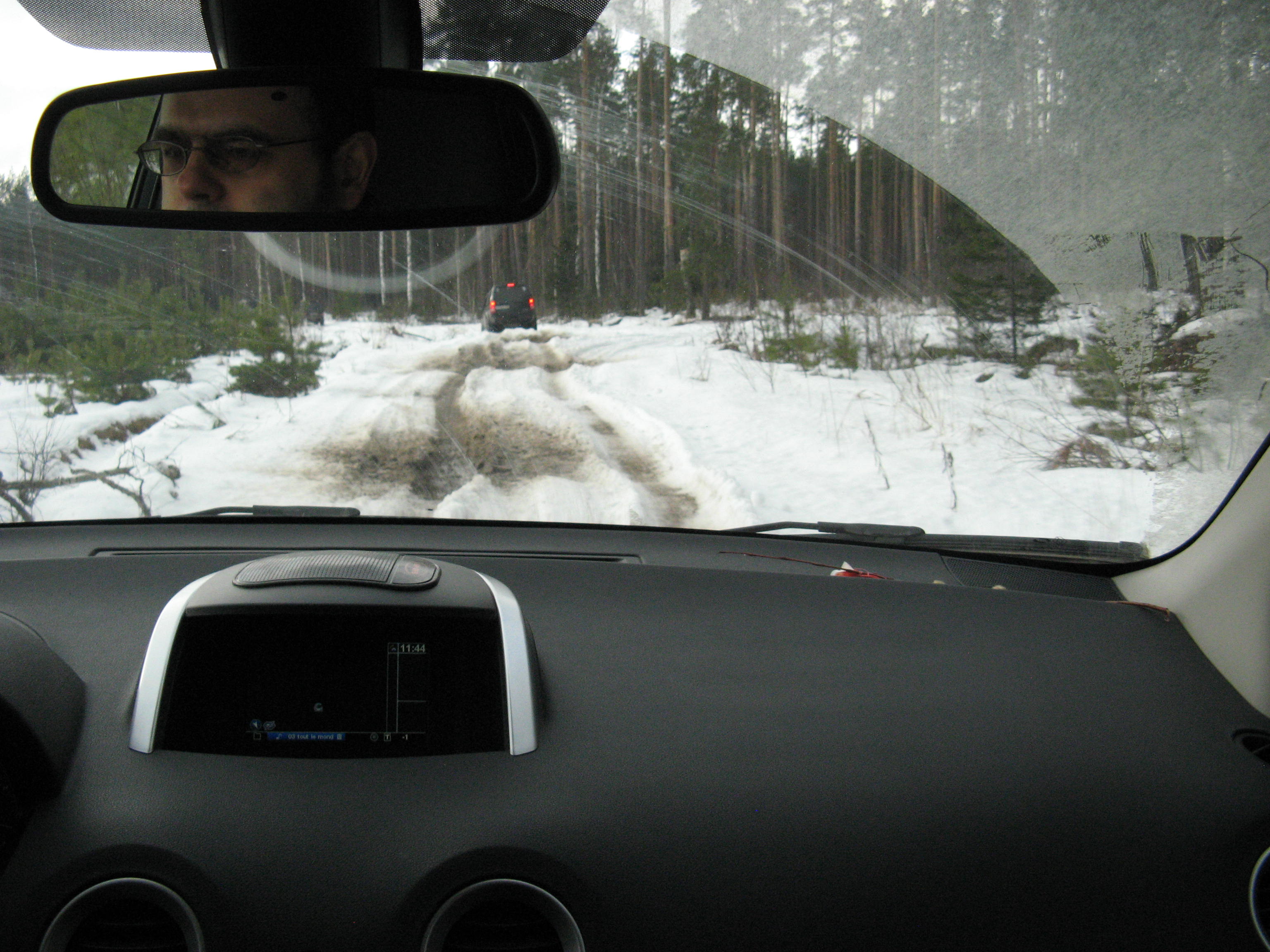 как потом выяснилось мы проскочили поворот с трассы и уехали по свежим следам в лес на пару километров, из-за чего и припоздали. Вообще-то там был бродик и могли засесть. Хорошо, что у Тьерри взял рацию, а то могли вообще пролететь с мт#27.