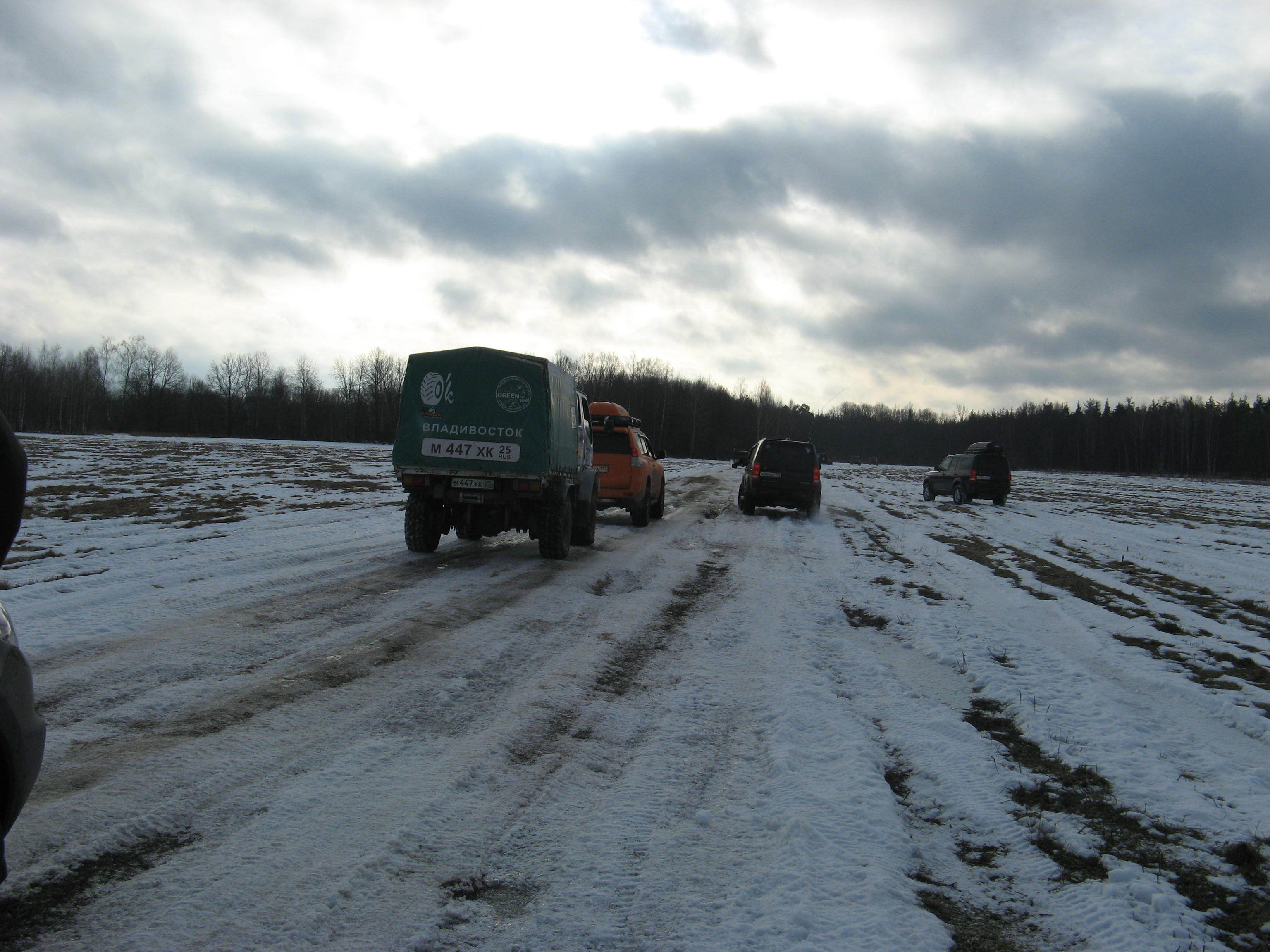Отлично покатались! Погода, правда, превратила почти все в "асфальт", но true джипер грязь найдет. Вот мы ее и нашли на подъездах к озеру. На трассе сильных было несколько ручьев, но то ли погода такая была, то ли страха по неопытности не было, но подсесть на них не получилось. Некоторые из нас стали нарочно искать приключений на свою голову и намеренно пытались засадить машинки. И это у двоих из них получилось. А еще у одного не получилось - но вместо этого получилось погнуть диск и железо в подвеске :nBangHead: