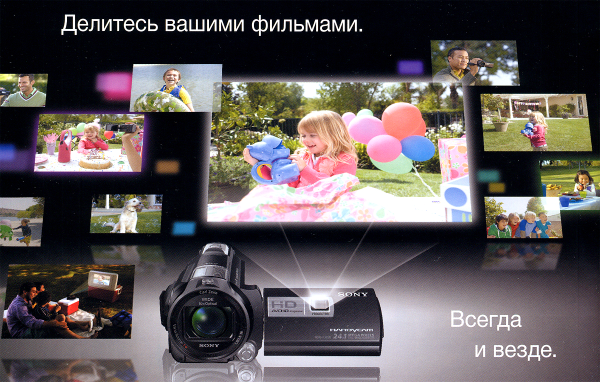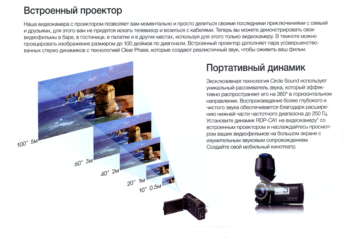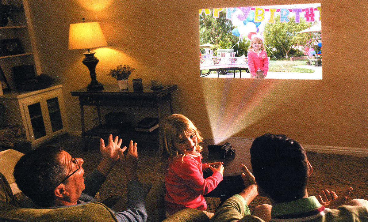 Встроенный проектор - Смотрите только что отснятые видеоклипы со своими друзьями: включите встроенный проектор и направьте его на экран, стену, потолок или на любую ровную поверхность