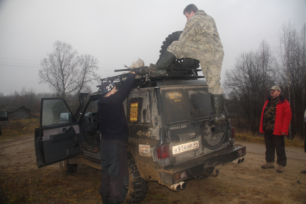 Встретившись с Пилотом на Ярославском шоссе, наскоро перекусив ( пока ждали Пилота я отстоял двадцать минут в ресторане быстрого питания, и уже у кассы, заказав, ожидая свой кофий и бутерсендвичи,мне на плече как в фильме « Операция Ы» легла твердая рука… Дима успел сделать заказ!) ,мы отправились в дорогу… Кантер вызывает такой интерес у всех участников движения что око зависти накрыло нас через час пути, злые силы поселились в левом переднем колесе и два раза напоминали нам о себе… Опыт Олега и огромный энтузиазм Рамиса, а так же помощь от экипажа Пилота не оставили шансов демонам, как мы думали меняя второй раз вечером злополучное колесо… но видимо мантра была прочитана не до конца , изгнанные злые силы переселились в правое заднее … Вообще скучать по дороге не пришлось. Встали ночью рядом с Чухломой, мимо нас проезжали такие же искатели на разных внедорожниках стремясь в точку сбора ,сигналя нам , пролетела шишига с флагом , как мы позже узнали это ребята из Костромы ехали прокатывать зимник «Сусанин трофи» . Машин десять, пятнадцать проехало за те два часа пока мы меняли третье колесо за день, все сигналили, приветствуя нас видимо подбадривая наш шиномантаж в ночи , и только маленький « Джимик» остановился и предложил помощь… спасибо тебе добрый человек!!.. К точке первого лагеря добрались к часу ночи , нас радушно встретили чухорги ,выдали номера , сувенирные кепки, и книгу о ПЧ 2010 ( они сами собрали материал и довольно интересно описали те места по которым нам предстояло двигаться три дня), было приятно! , чухорги ,как старых друзей окружили заботой , объяснив структуру лагеря ( туда не ходи, сюда ходи… тут дети и собаки ,там шум и веселье..) . Выбрав место на поле, поставив палатки, мы еще долго , (видимо уже подкатывал адреналин) сидели, пили чай, обсуждая предстоящую дорогу читая вслух из книги ПЧ2010, поминали демонов проколовших нам за день три колеса!!! ,твердо решив встать уже сегодня в восемь, легли в четыре…
