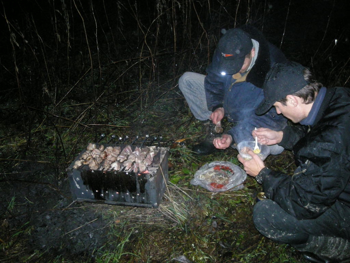 Появившись в лагере, экипаж сдает номерок, его утром выдали при выезде, орг пригласили всех в кинозал под открытым небом ( и так каждый день!) Супер ! с восьми вечера показывали короткие фильмы о путешествиях снятые самими участниками и присланные до поездки чухоргам,.. И тут всех удивил Пилот! У него был шашлык и мангал! Вообщем, пока ставили лагерь, разводили костер, Иван сделал нам шашлык! И мы неспешно вели разговоры у костра….