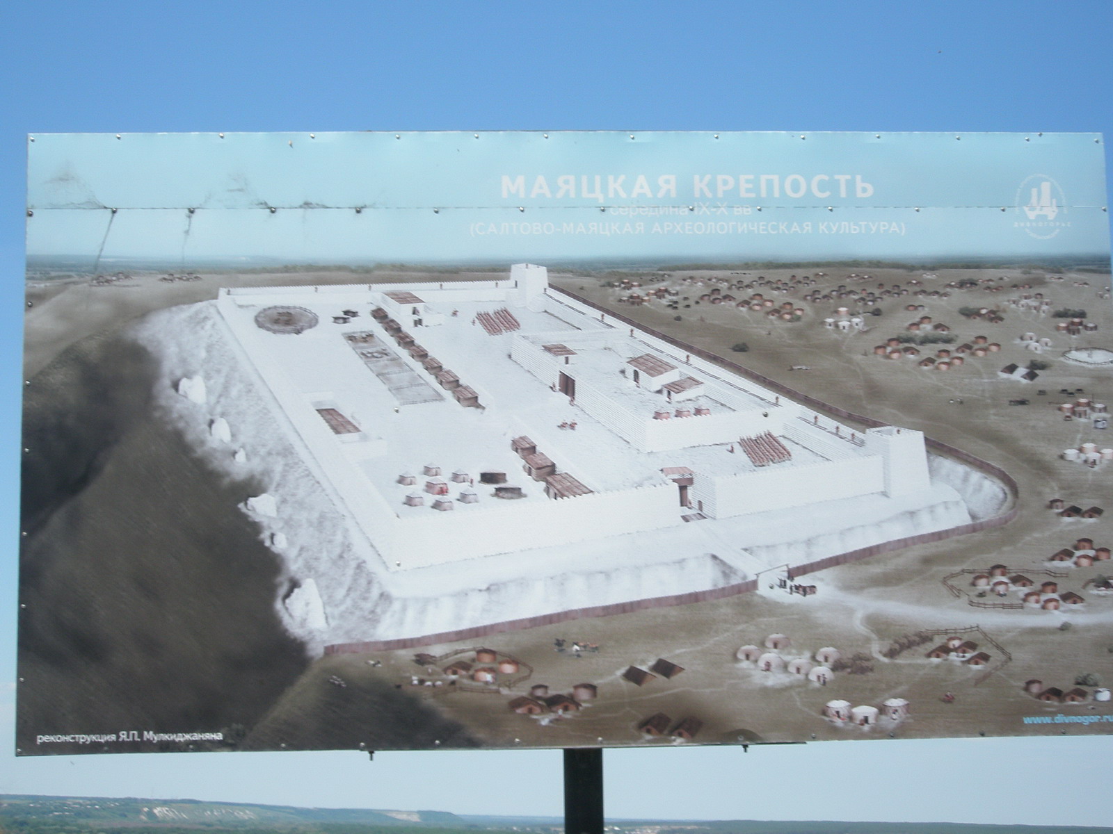 Маяцкая крепость в том же заповеднике предстала перед нами на рисунке…К сожалению, не дожила она до нашего времени ни в каком виде. Мел – порода хрупкая, а народ у нас предприимчивый, потому стал разбирать крепость по блокам…Странно то ,что остатки крепости засыпали грунтом, дабы законсервировать от разрушения…Лично мне такой ход мыслей не понятен…закопать, чтобы сохранить…Да, и закопать на какое время? Навсегда?