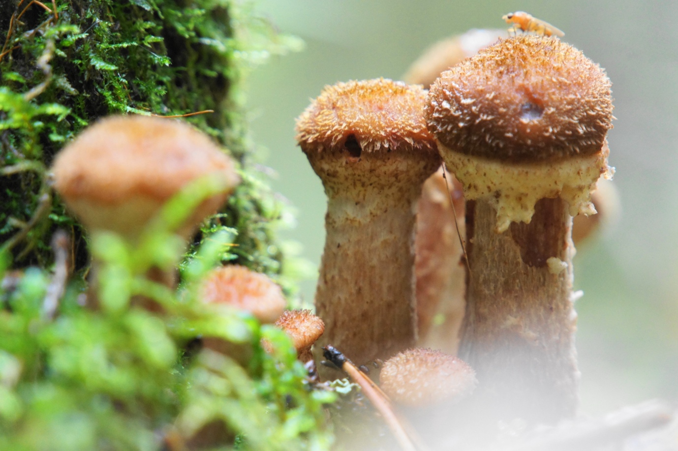 Начали с грибов... За три дня (мы с Наташей были там в воскресенье) успели вырасти новые грибы, появились опята. Пробежавшись по "своим местам", собрали немного... Вот так они росли: