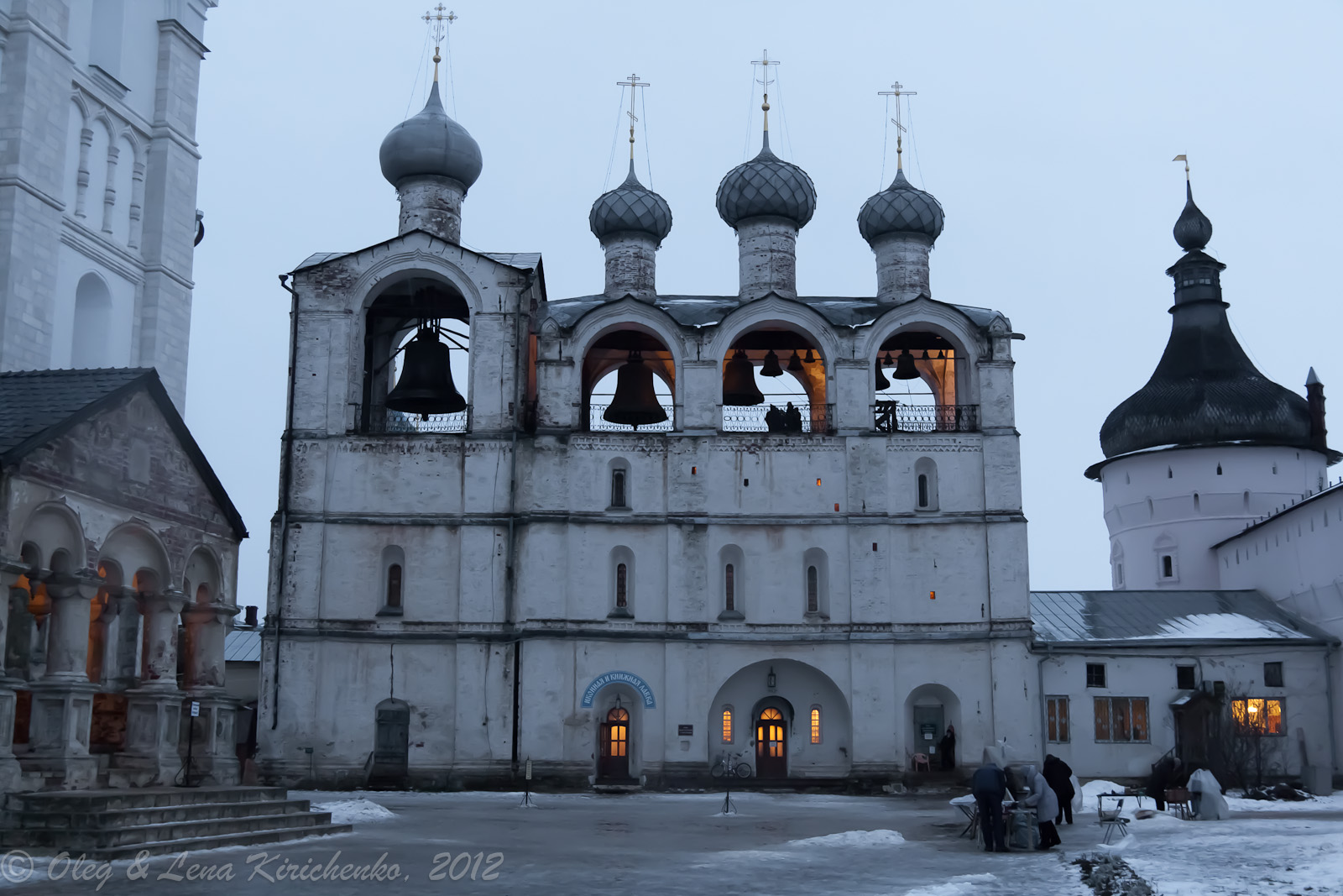 Уже в сумерках предрождественского вечера приехали в Ростовский кремль. Ворота были открыты, шла подготовка к праздничному служению. А нам даже удалось подняться на колокольню.