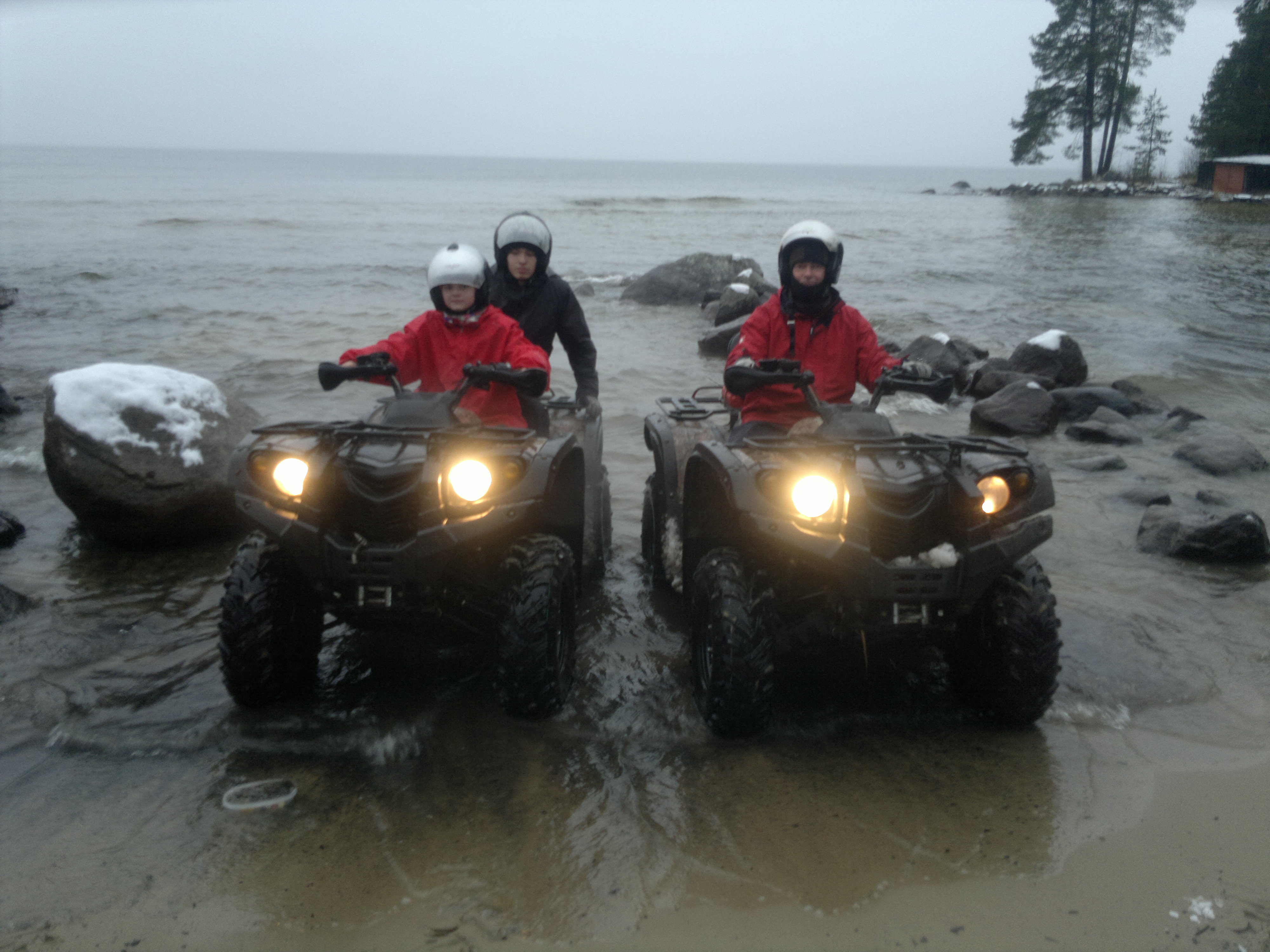 Не знаю, чо нас понесло на севера дальше по болотам, вроде как и устали...и замерзли... Короче, необъяснимо! Но душа потребовала "продолжения банкета"! Рванули до нашей любимой базы в Медвежьегорске. Взяли там два квадрика и рванули по карельским лесам и болотам! Нарубились...! Серега так квадрик затопил в болотине, что почти час лебедились. Конкретно его-бедолагу засосало.