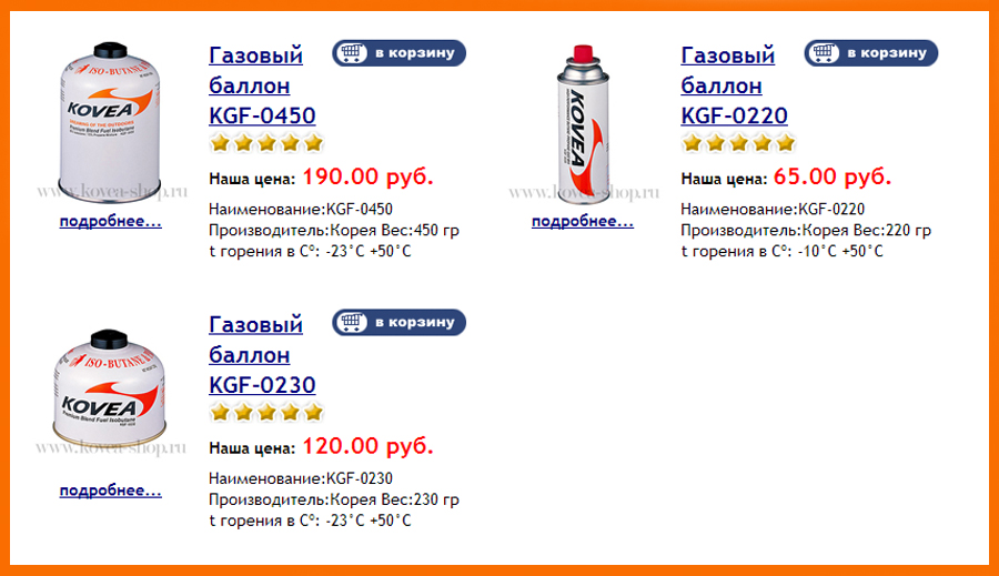 Газовый баллон KGF-0450,KGF-0220,KGF-0230