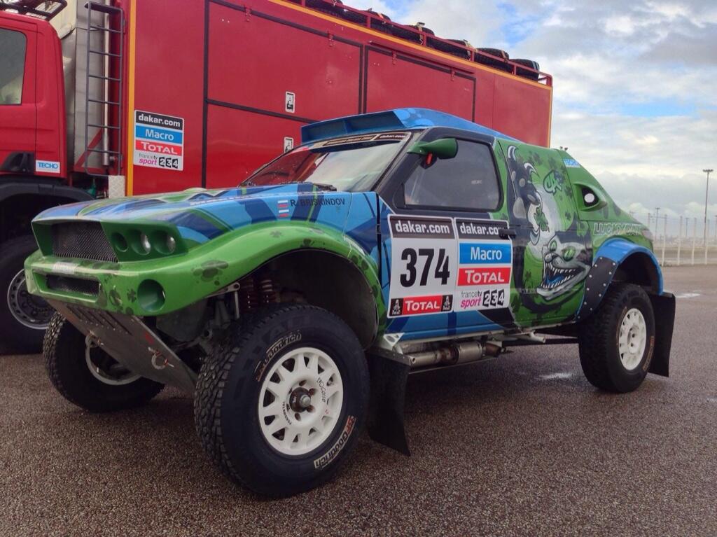 Роман Брискиндов и Константин Мещеряков выступают на Дакар 2014 на автомобиле G-Force Proto со стартовым номером 374.